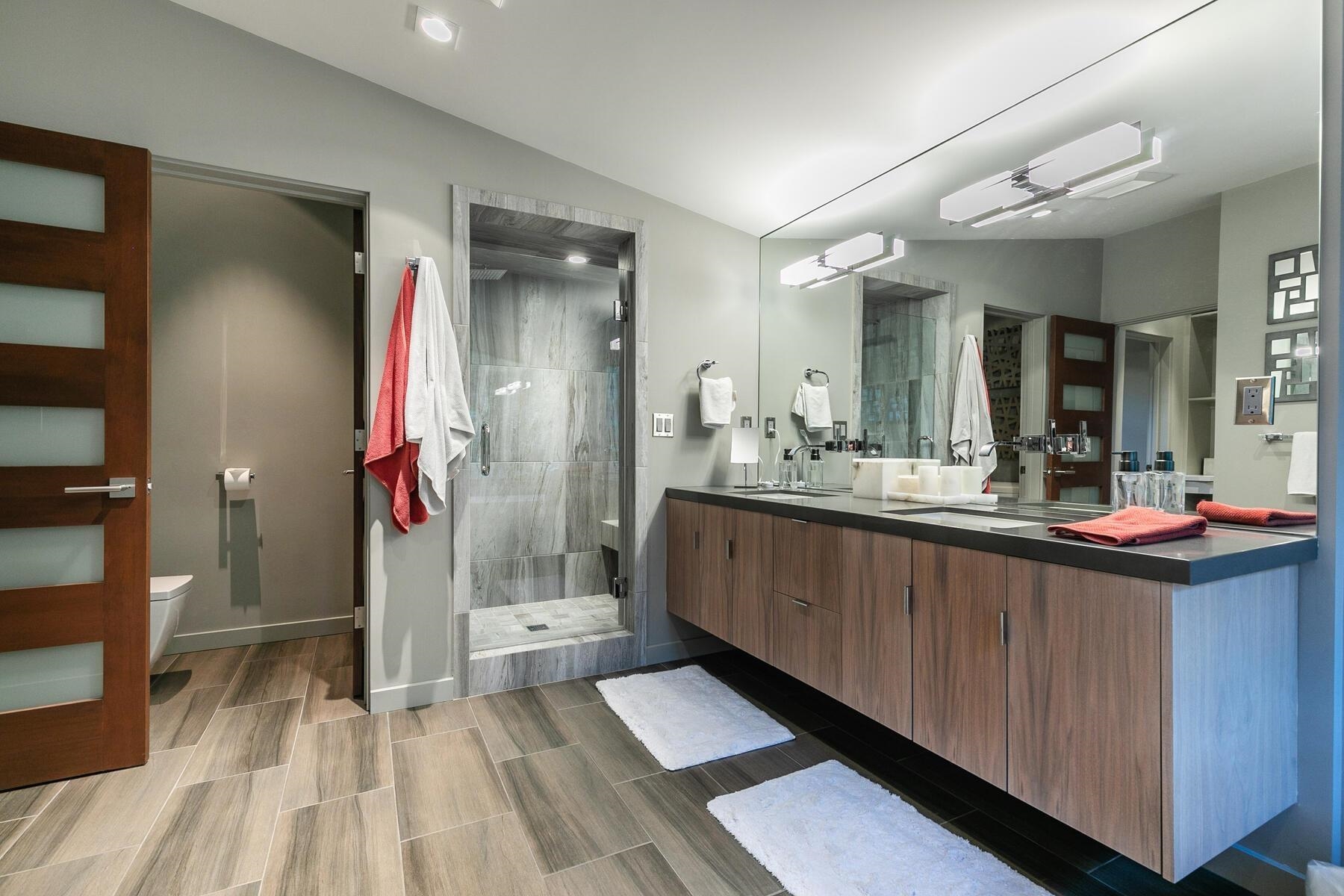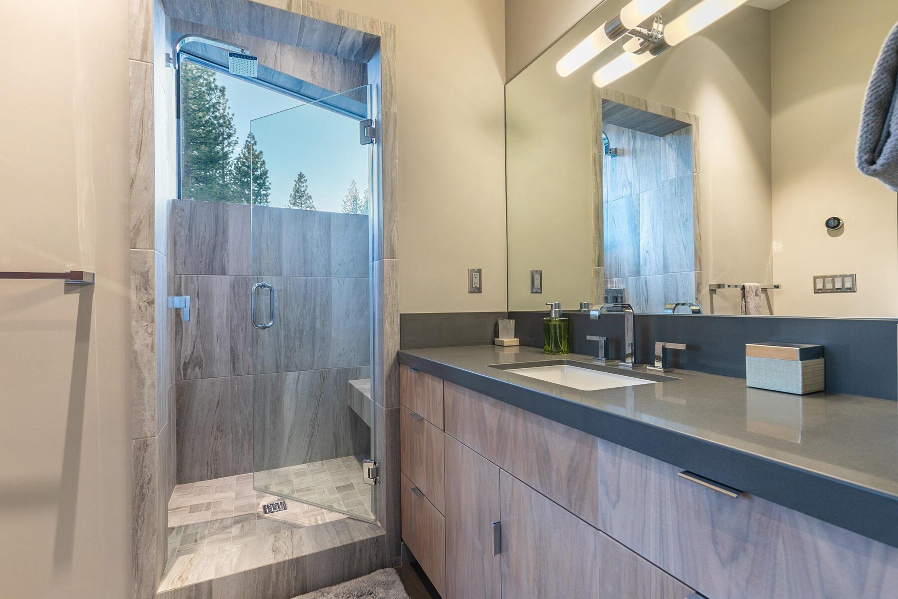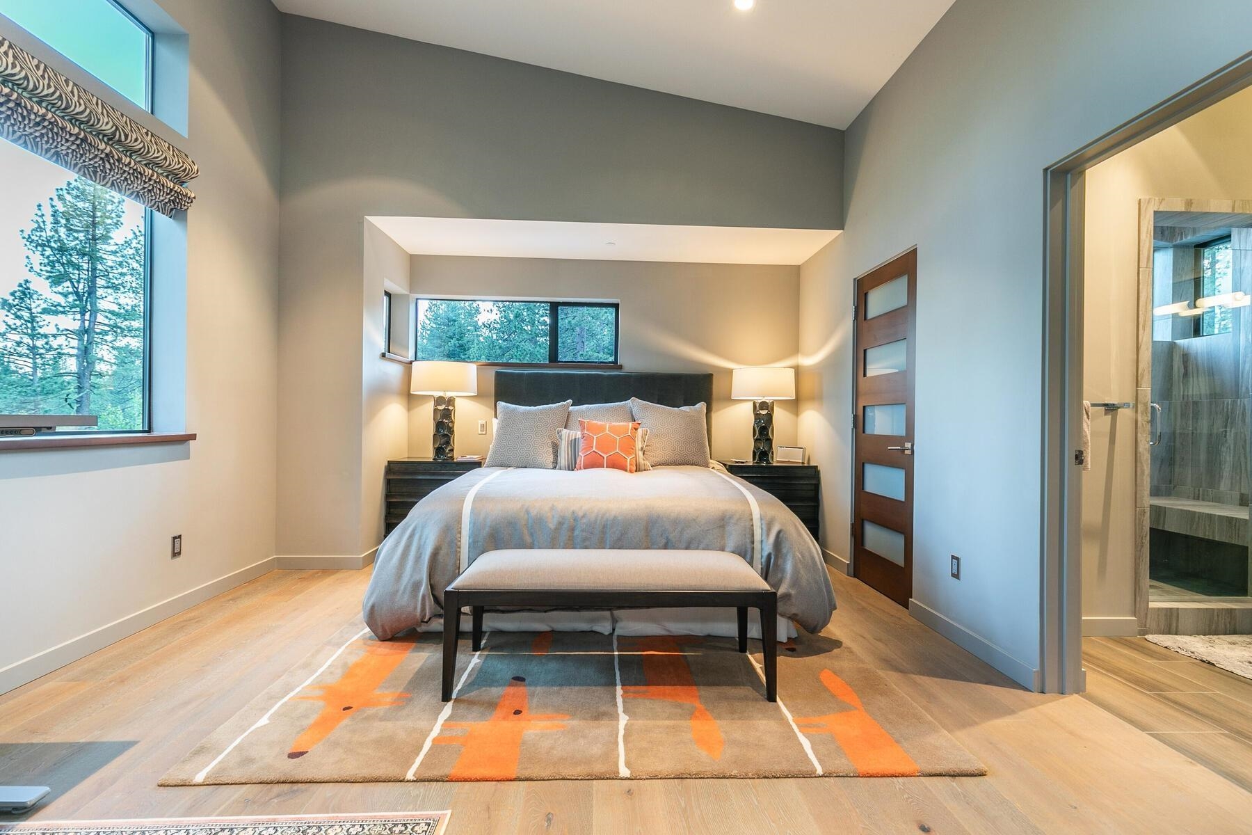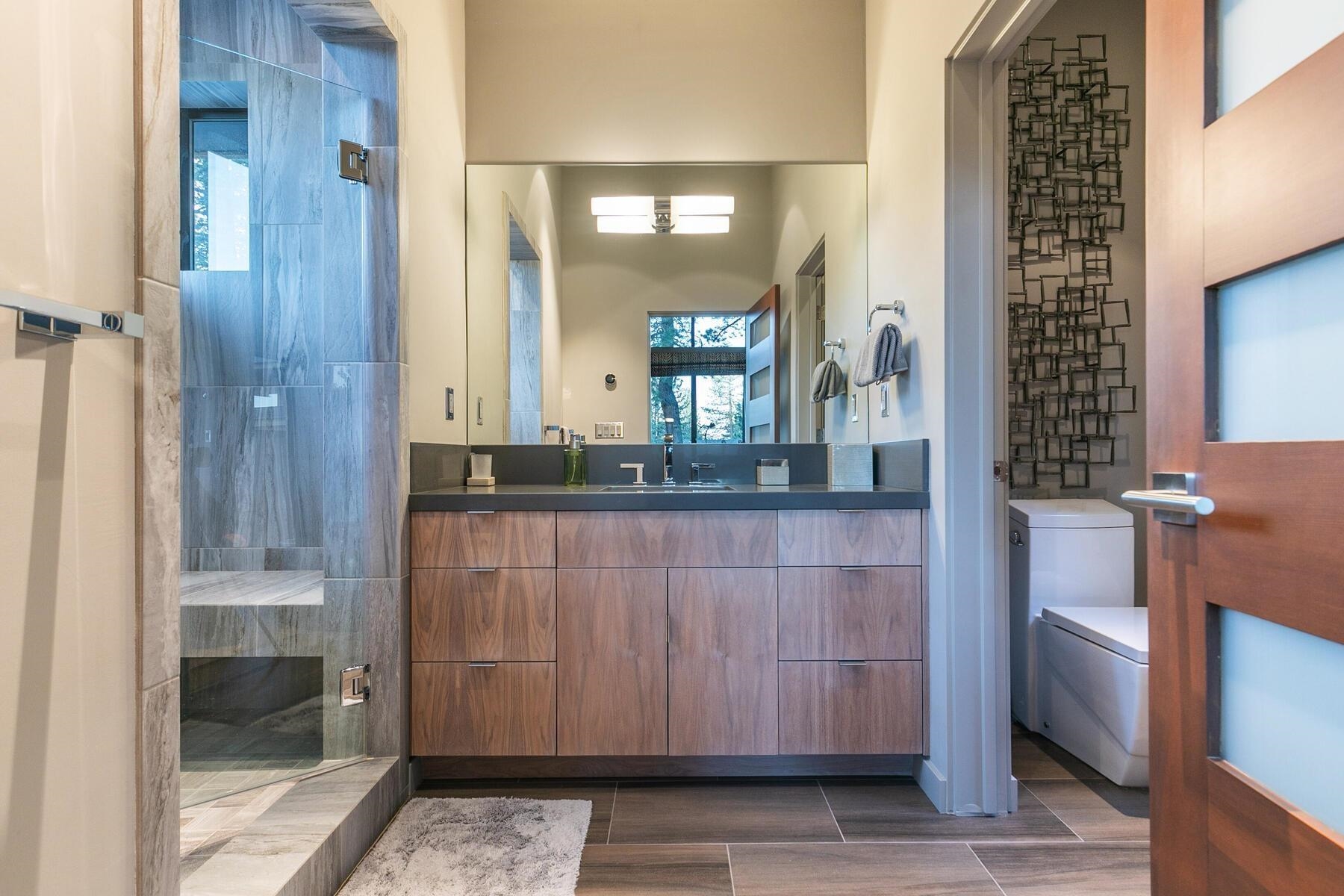 Backing to open space and Gray's Crossing trail system, this progressive home focuses on energy efficiency and clean lines with a mountain/modern flare. The beauty of this home is in the simplistic detailing with large exposed steel beams, radiant heat, polished concrete floors, and linear gas fireplace with floor to ceiling metal cladding. The two primary suites, flex room, mud room and large patio offer perfect utility for entertaining family and friends. The mature landscaping and available homesite to the north-west offer peace and privacy for your mountain retreat.